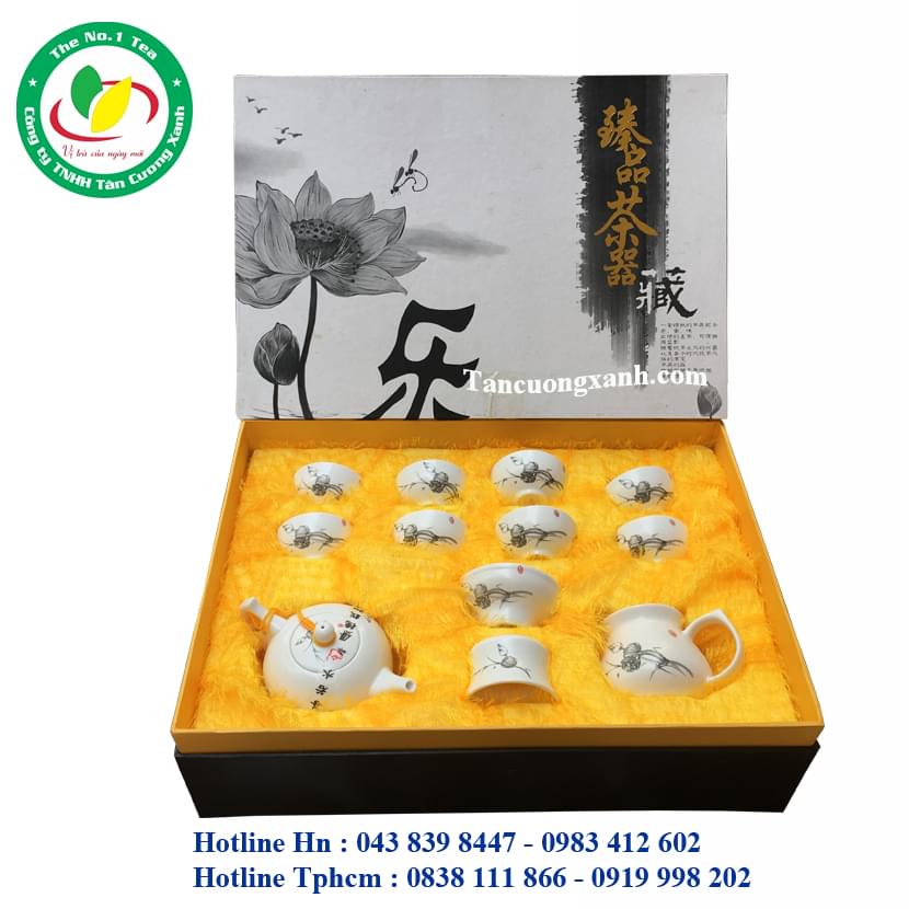 Bộ Ấm Chén Hoa Sen Trắng TCX 13