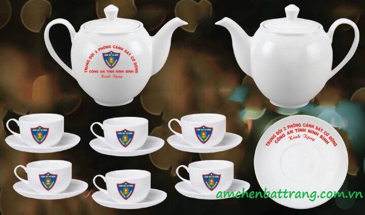 Có thể sử dụng ấm chén Bát Tràng giá rẻ để in chữ, in logo công ty, in thương hiệu hoặc in kèm cả 2.