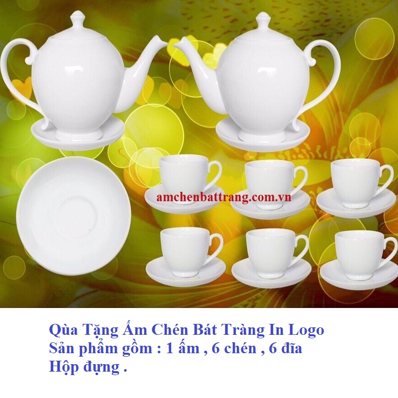 Ấm chén Bát Tràng in logo là những sản phẩm cao cấp , áp dụng công nghệ cao , cùng sự kết hợp vô cùng hoàn hảo của các nghệ nhân làng nghề truyền thống Bát Tràng tạo nên những sản phẩm chất lượng , mẫu mã vô cùng đặc sắc , màu sắc đẹp , bền bỉ , ít bị ố vàng , ngả màu , giữ được độ bóng loáng , sang trọng thời gian dài. Đặc biệt , những sản phẩm này còn được trang trí với nhiều họa tiết , hoa văn đặc sắc , nổi bật .