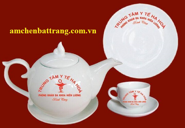 - ấm chén bát tràng in logo loại 1 : 200 000 vnđ/1 bộ